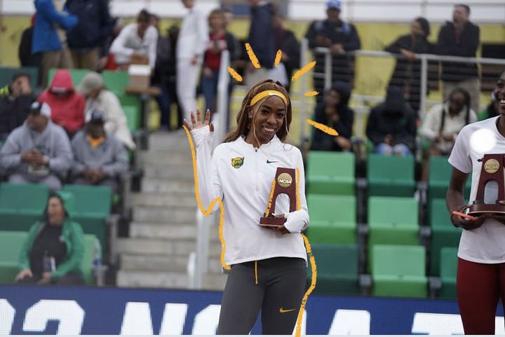 At Holmwood, she proved her mettle as a rising star in the 400 metres: after shaving 2 seconds off her personal best in one season (woah?), she capped off her high school career with a silver medal at ISSA Boys and Girls Champs, a bronze medal from the 2019 Pan American Games, and a full athletic scholarship to the Big 12 Conference’s Baylor University in Waco, Texas.